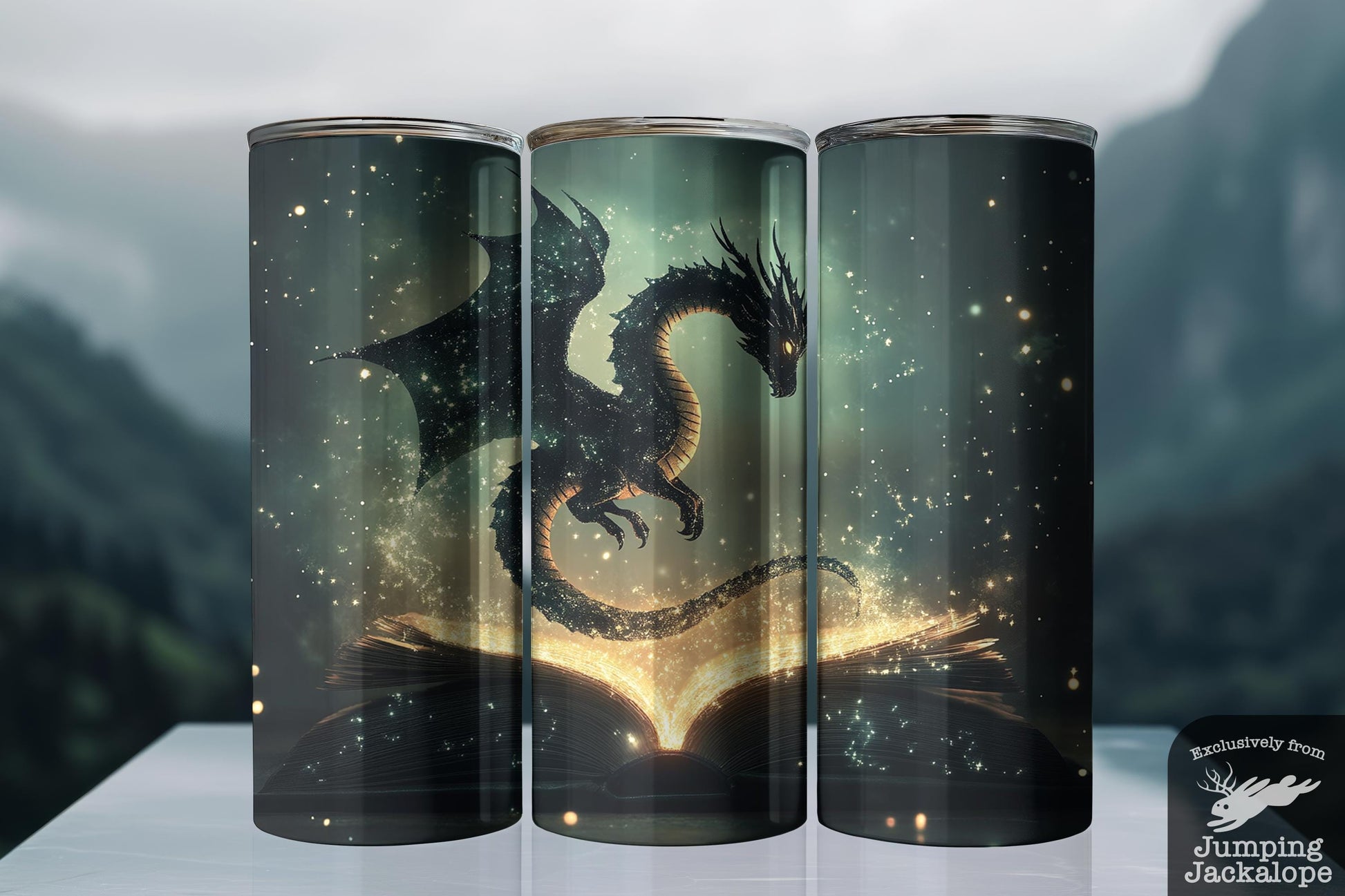 Book of Fire Tumbler – 20oz Dragon Summoning Spell Fantasy Art | Magical Gothic Scene Cup