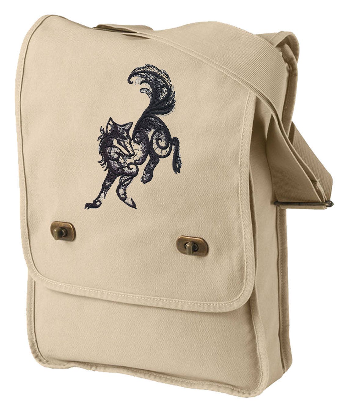 Dark Creatures - Wolf Canvas Bag, Wolf Embroidered Canvas Field Bag