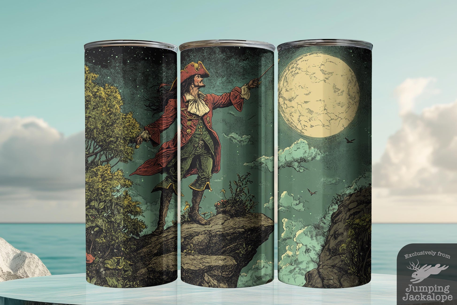 Dark Neverland Captain Hook Tumbler – 20oz Gothic Pirate Illustration | Peter Pan Fantasy Gift