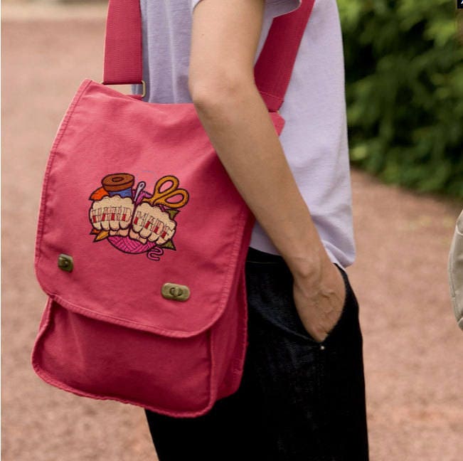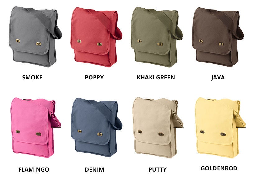 Embrace a rich array of color in this painterly-style dragon design embroidered on a canvas field bag.