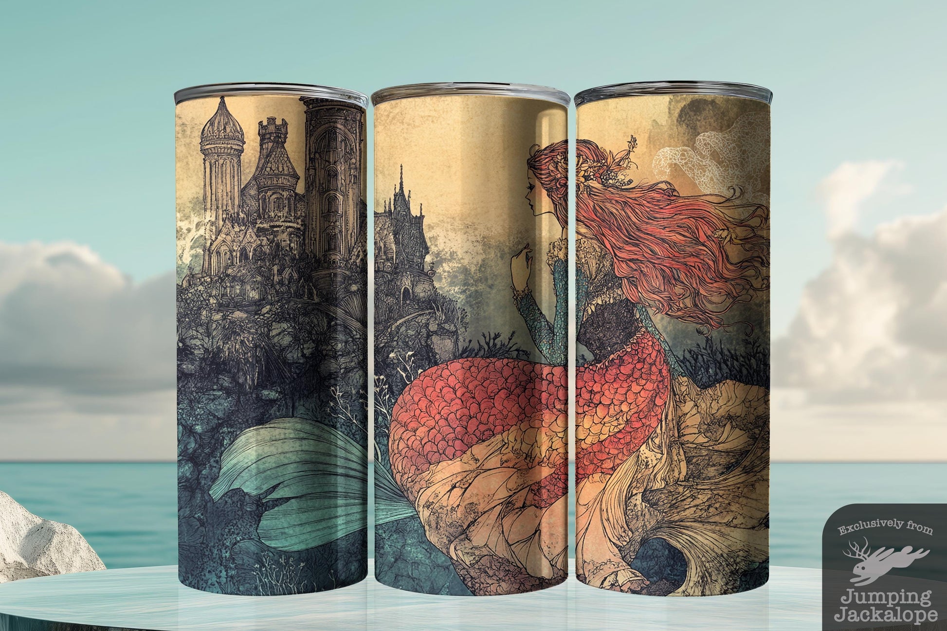 Enchanted Castle Mermaid Tumbler – 20oz Red-Tailed Fantasy Siren | Fairytale Drinkware