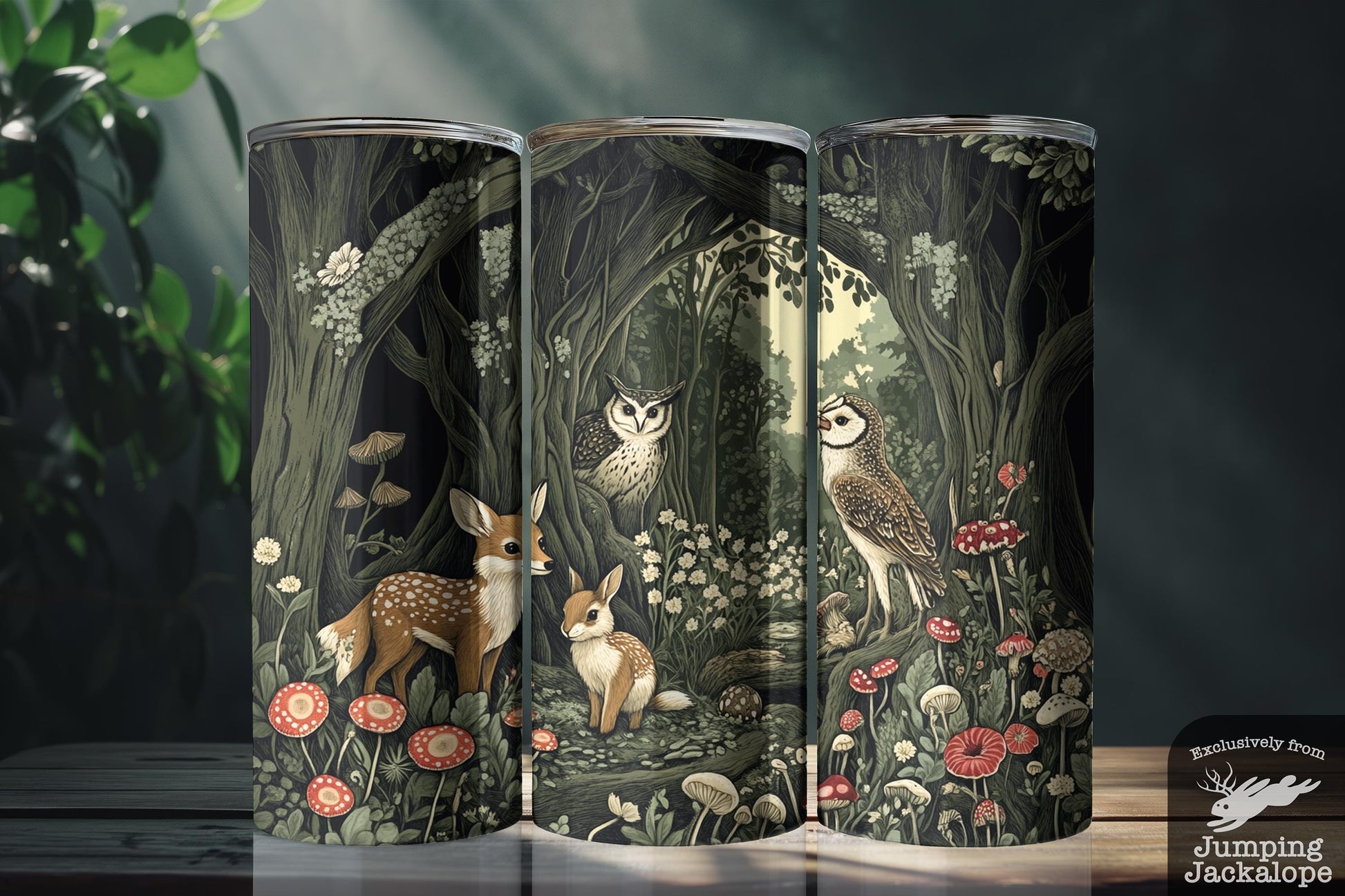 Enchanted Glade Tumbler – 20oz Baby Deer, Owls, and Mushrooms | Whimsical Forest Drinkware