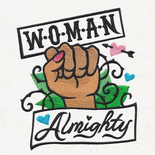 Bold colors and tattoo-style details show off the sass and pride of the message in this feminist design. Feminist design embroidered on a padded, canvas tech bag.