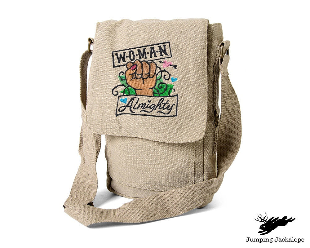 Femme Fatale - Woman Almighty Embroidered Canvas Tech, Tablet, iPad, Kindle, Fire, Camera Bag