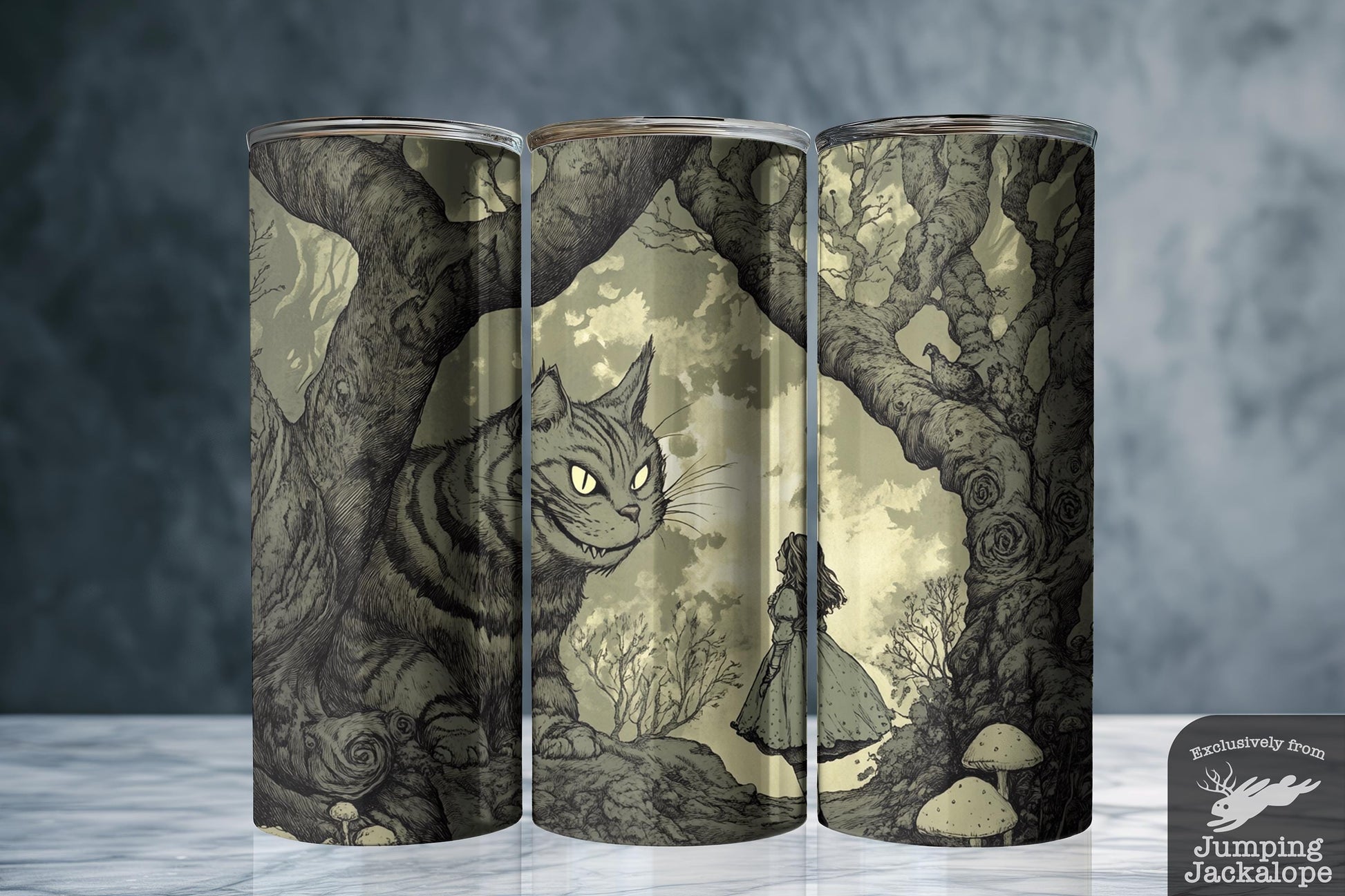 Forgotten Path Tumbler – Alice and Cheshire in a Fungal Forest | 20oz Gothic Fairytale Art