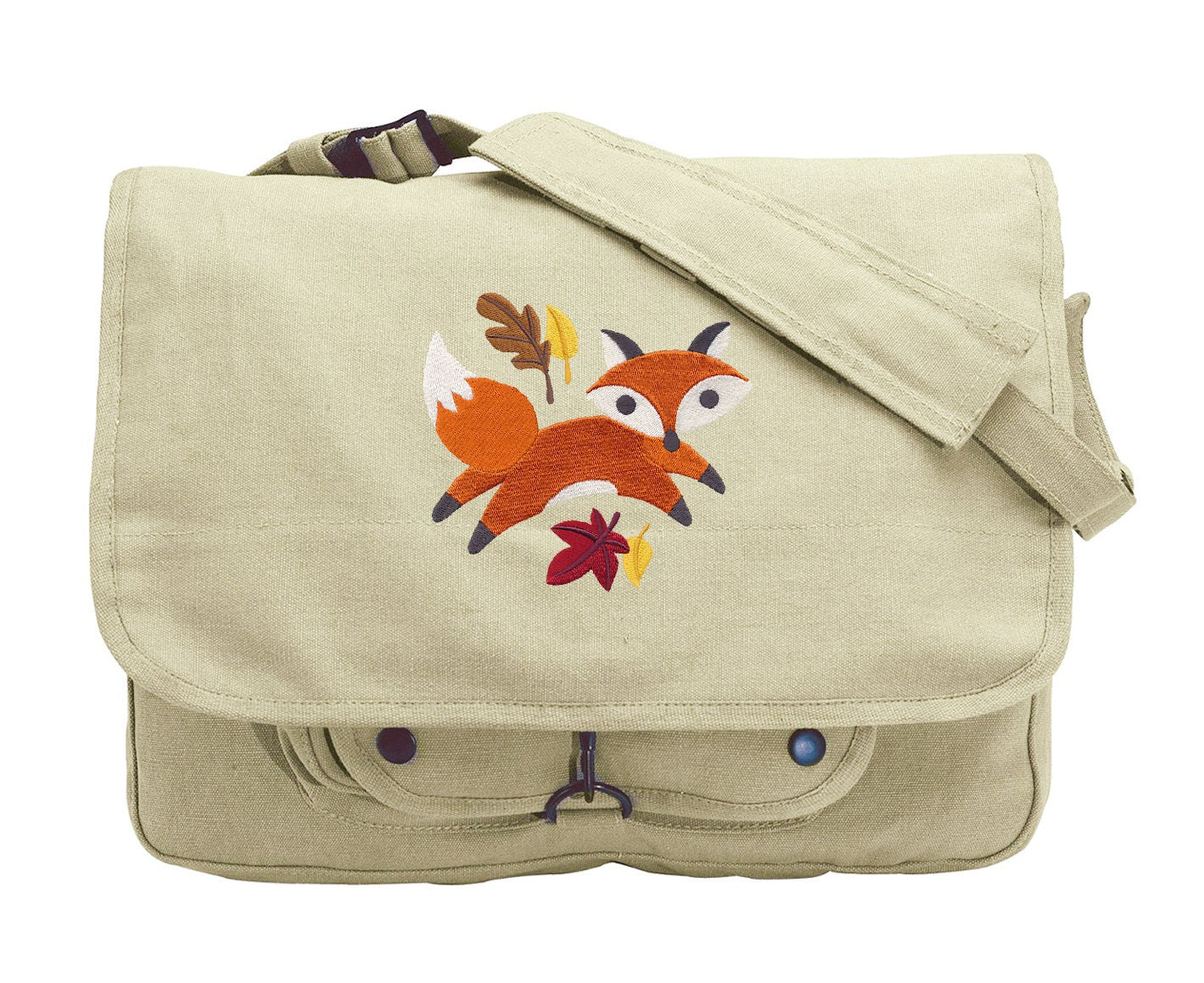 Fox in Fall Frenzy Embroidered Canvas Messenger Bag