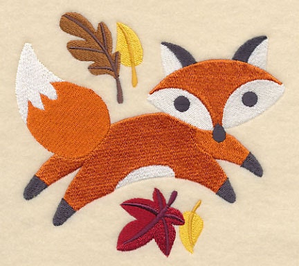 A red fox hangs out in this autumn country scene. Embroidered on a canvas messenger bag.