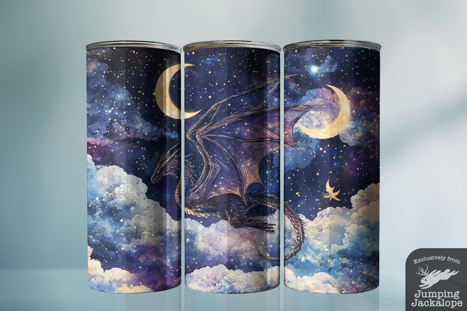 Frozen Star Dragon Tumbler – 20oz Icy Lunar Fantasy Drinkware | Cool Celestial Night Sky