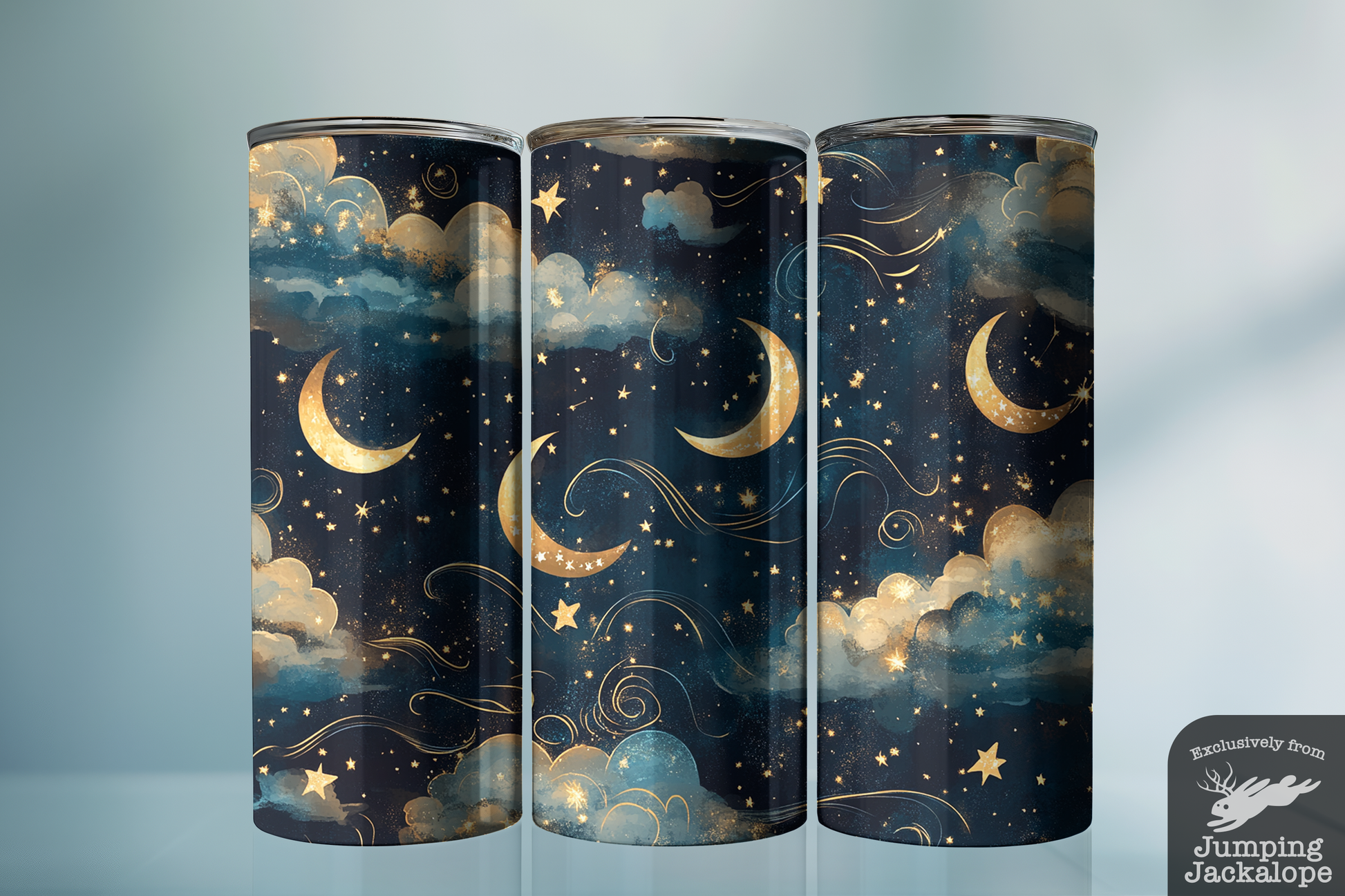 Golden Moons and Stars Tumbler – Night Sky Magic in Navy & Gold