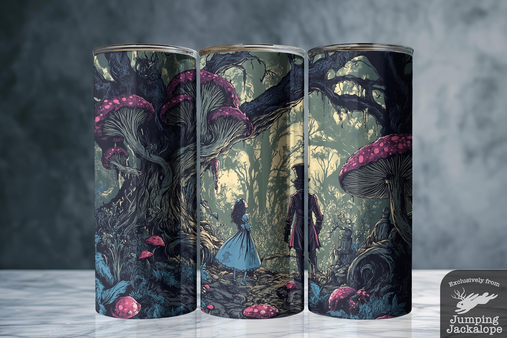 Gothic Forest Duo Tumbler – 20oz Sublimated Alice and Mad Hatter Scene | Creepy Fairytale Gift