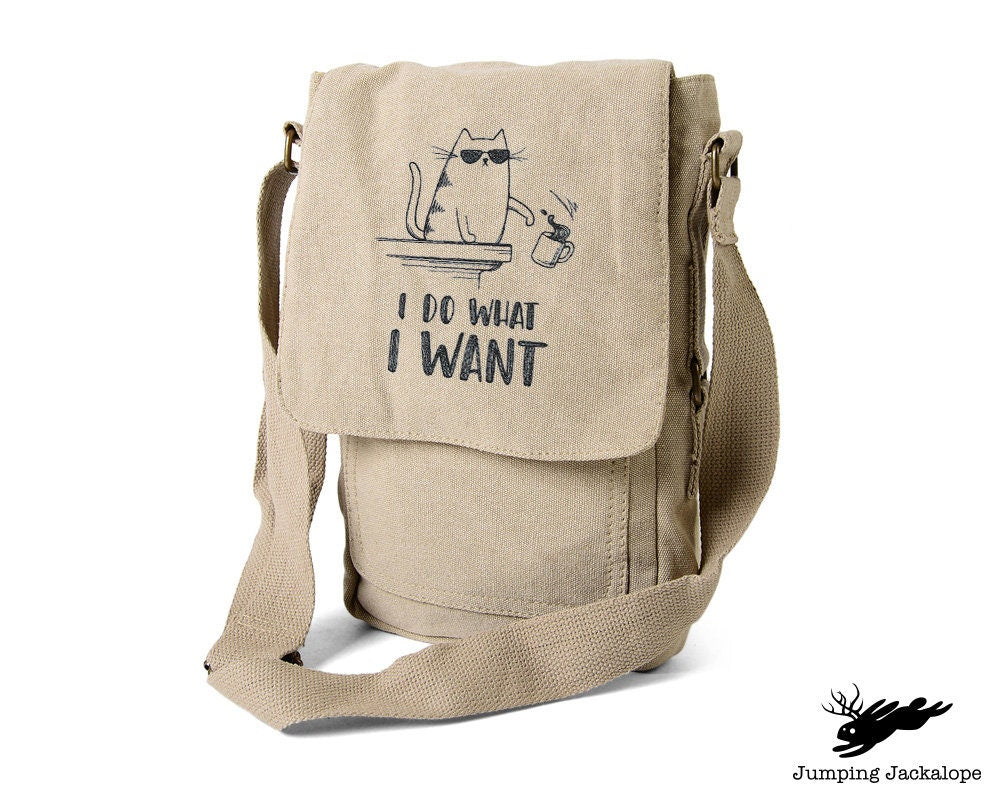 I Do What I Want, Cat Bag, Cat Embroidered Canvas Tech, Tablet, iPad, Kindle, Fire, Camera Bag
