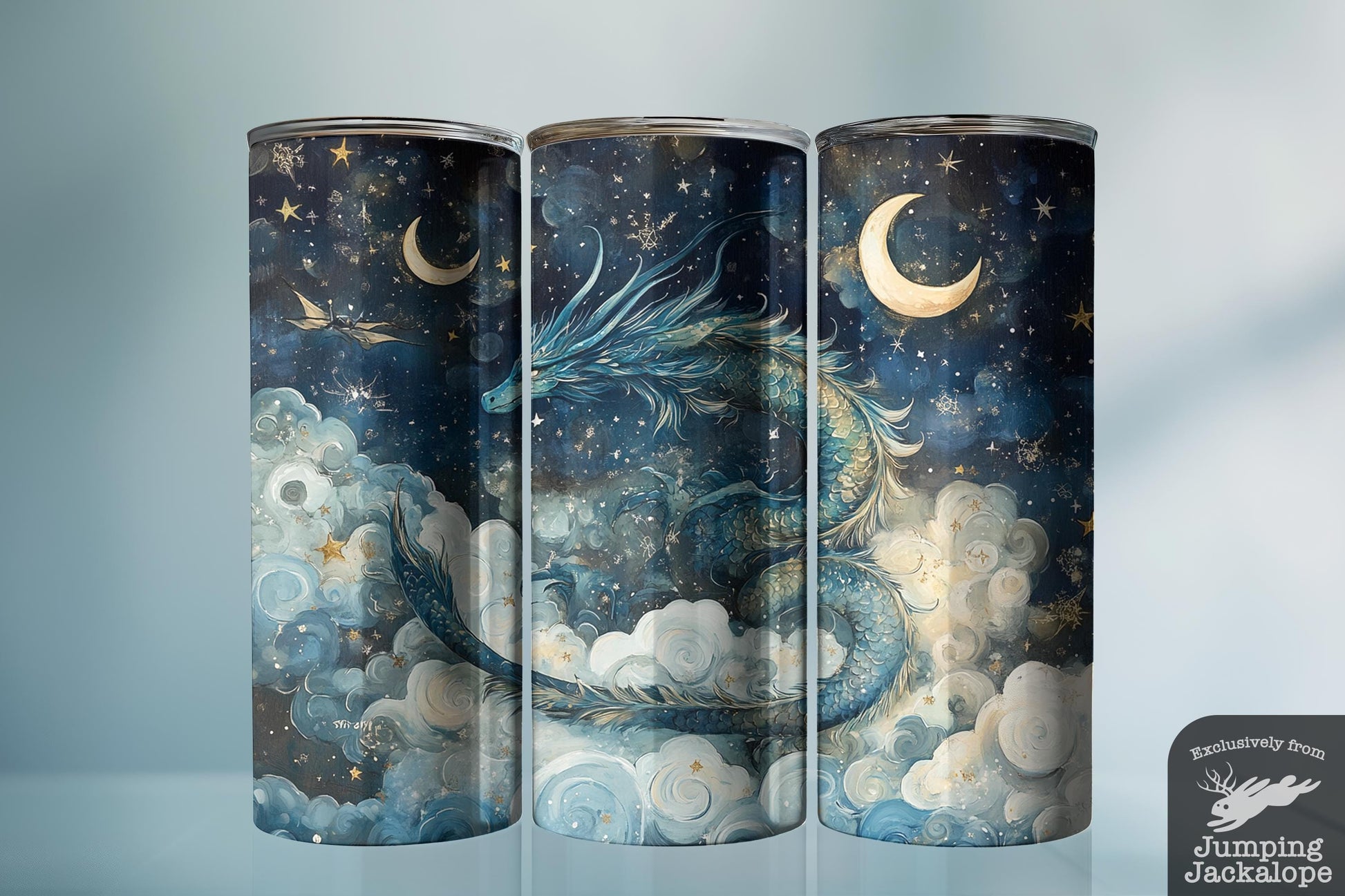 Lunar Dream Dragon Tumbler – 20oz Celestial Sky Serpent | Whimsical Fantasy Cloud Art Cup