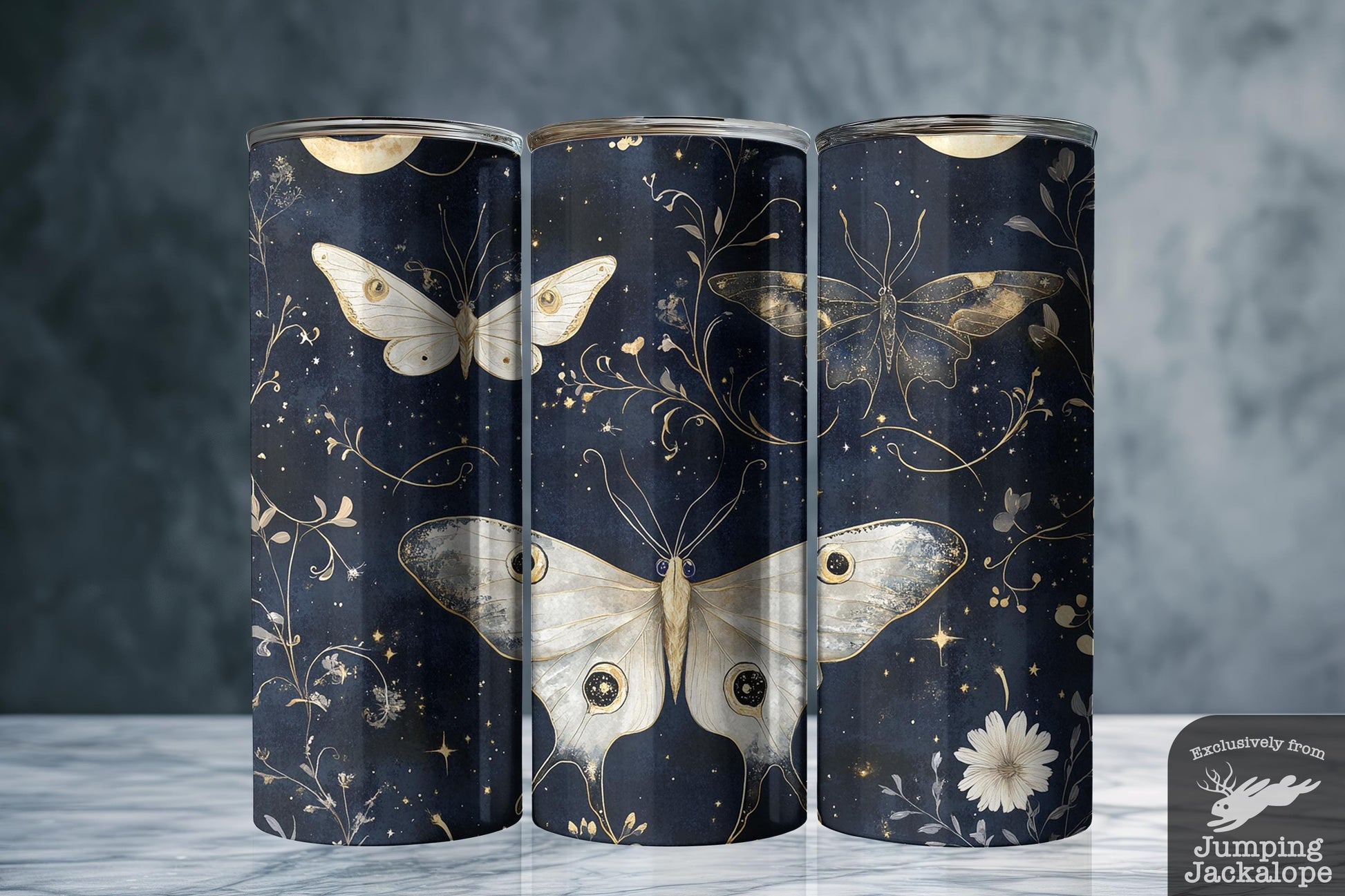 Lunar Moth Parade Tumbler – 20oz Celestial Creatures and Stars Drinkware | Dreamy Gothic Fantasy