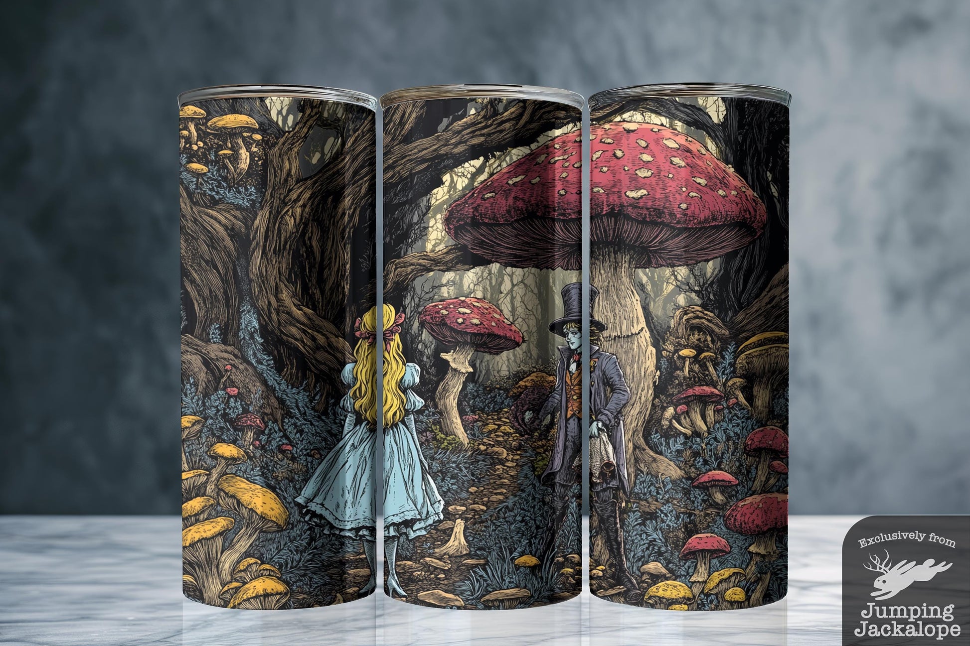 Madness in the Woods Tumbler – Alice and Hatter in Enchanted Forest | 20oz Gothic Fantasy Mug