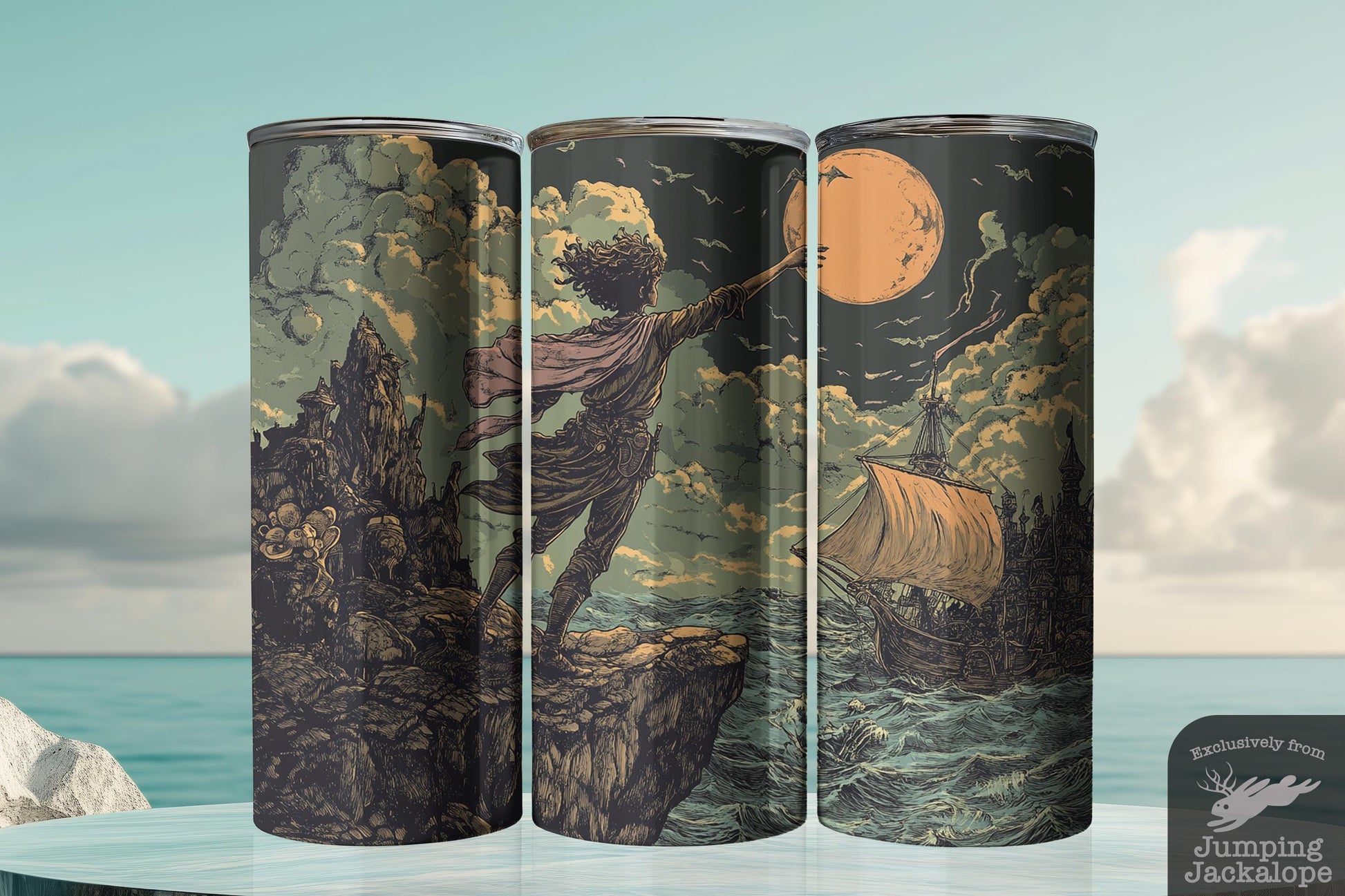 Moonlit Peter Pan Tumbler – 20oz Gothic Neverland Drinkware | Dark Fairytale Scene