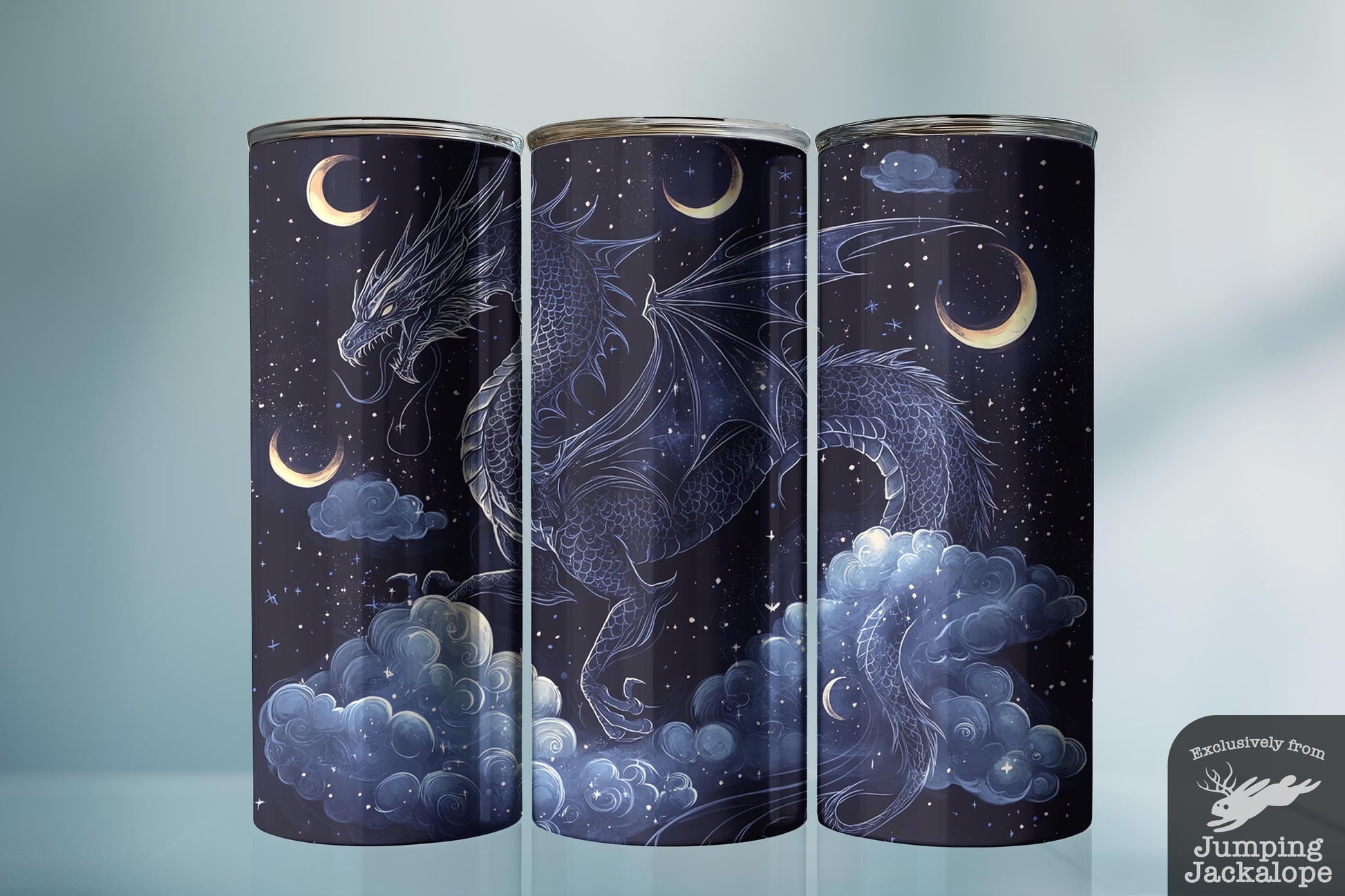 Mystic Moon Dragon Tumbler – 20oz Night Sky Fantasy Drinkware | Celestial Blue Cloud Art