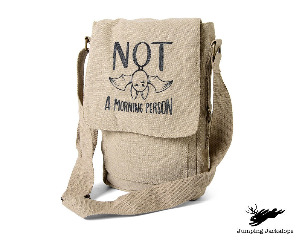 Not a Morning Person, Bat Bag, Bat Embroidered Canvas Tech, Tablet, iPad, Kindle, Fire, Camera Bag