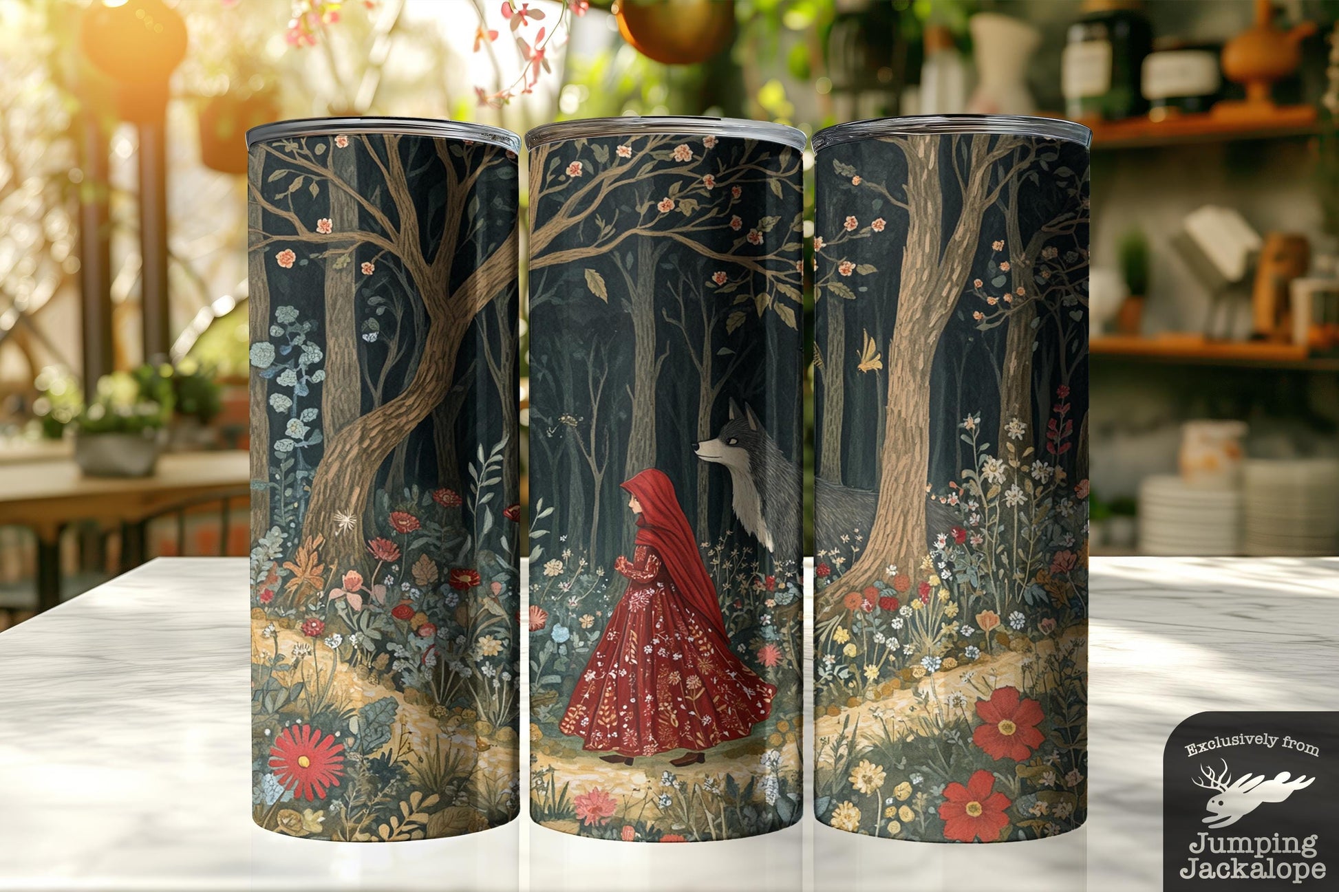 Red Riding Hood Forest Tumbler – 20oz Gothic Fairytale Drinkware with Enchanted Wolf & Floral Path
