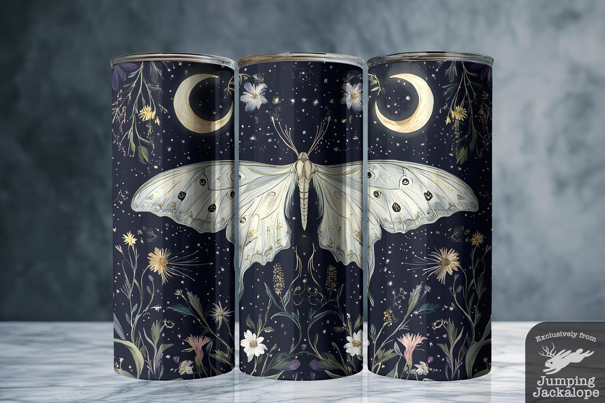 Stardust Waltz Moth Tumbler – Fantasy Floral Moon Moth Travel Cup
