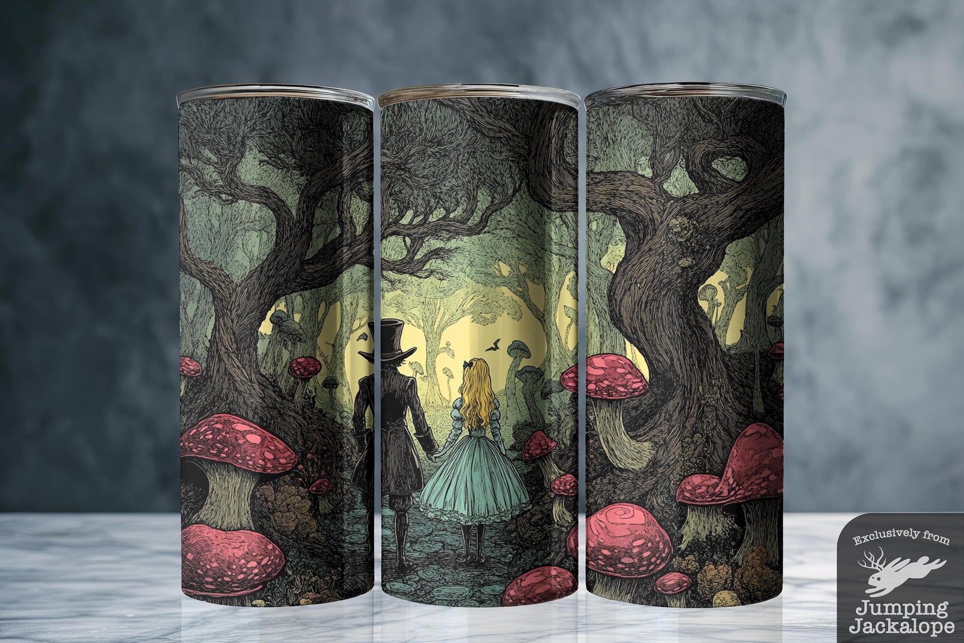 The Curious Path Tumbler – Alice Meets Mad Hatter in Twisted Forest | 20oz Dark Wonderland Cup
