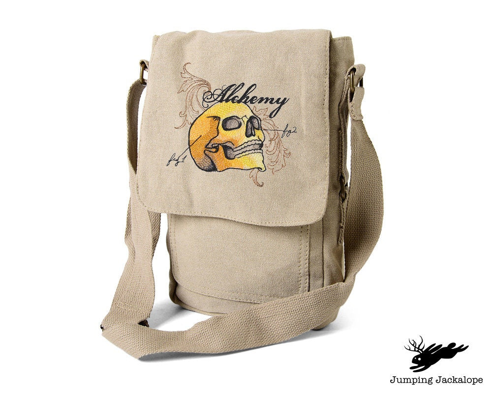 The Laboratory - Skull, Skull Bag, Skull Crossbones Bag, Skull Bag Embroidered Canvas Tech, Tablet, iPad, Kindle, Fire, Camera Bag