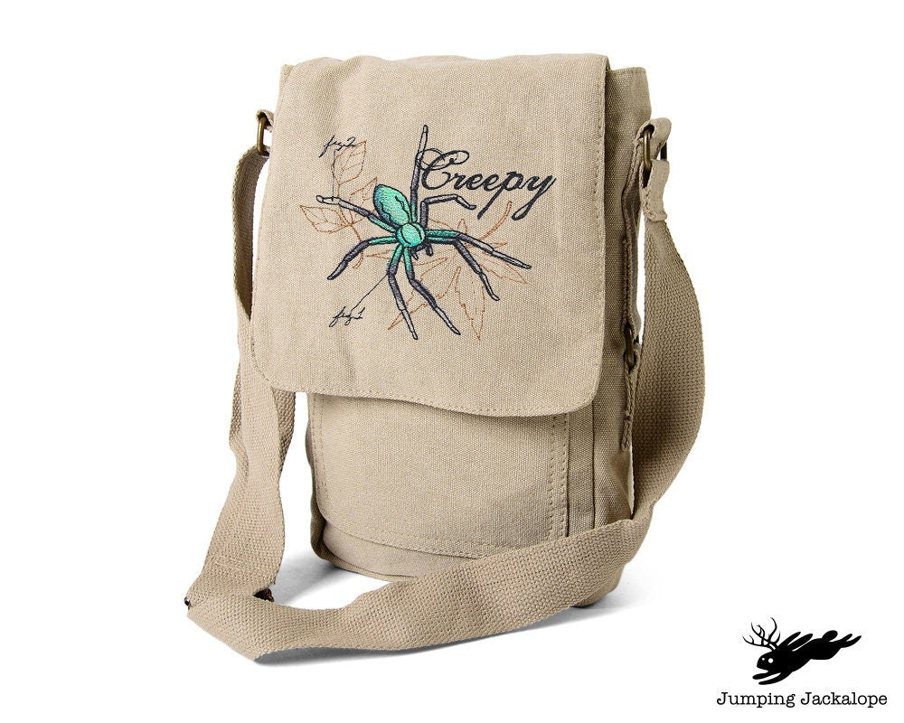 The Laboratory - Spider Embroidered Canvas Tech, Tablet, iPad, Kindle, Fire, Camera Bag