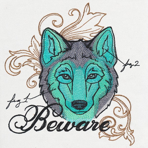 Beware of the wolf design. Wolf design embroidered on a padded, canvas tech bag.