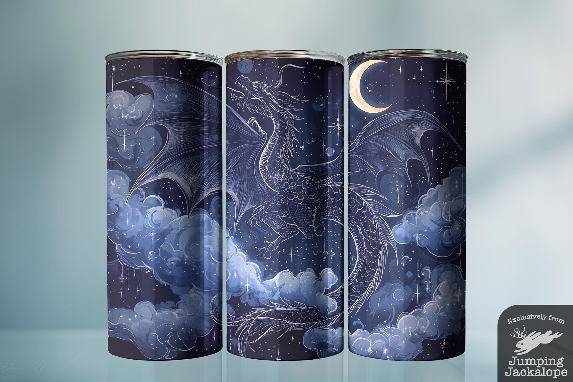 Twilight Soar Dragon Tumbler – 20oz Celestial Fantasy Drinkware | Lunar Night Sky Clouds