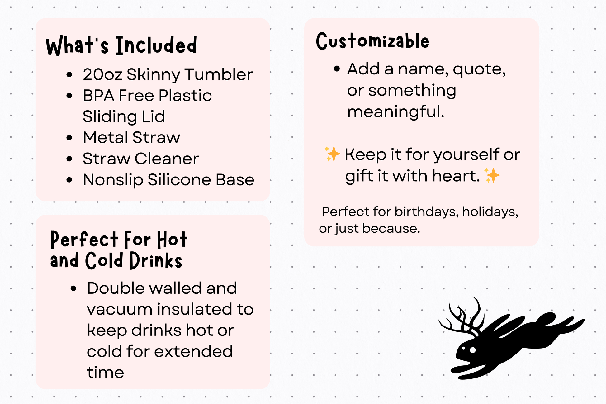 - ✔ 20oz Double-Walled Stainless Steel Tumbler