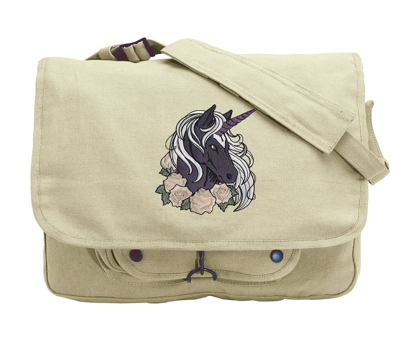 Unicorn Canvas Bag, Shadow Unicorn Embroidered Canvas Messenger Bag