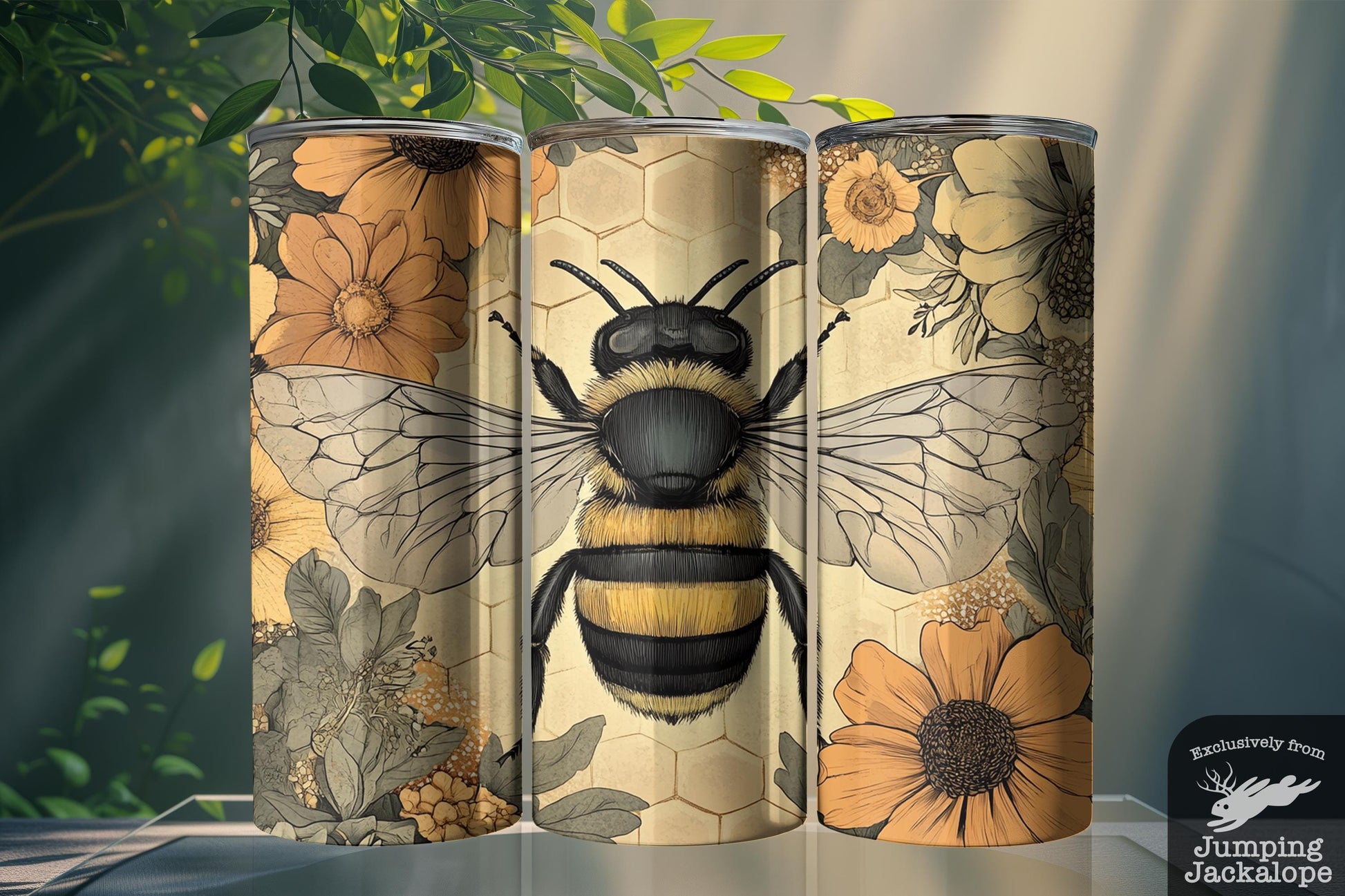 Vintage Bee & Floral Garden Tumbler – 20oz Honeycomb and Wildflower Cup