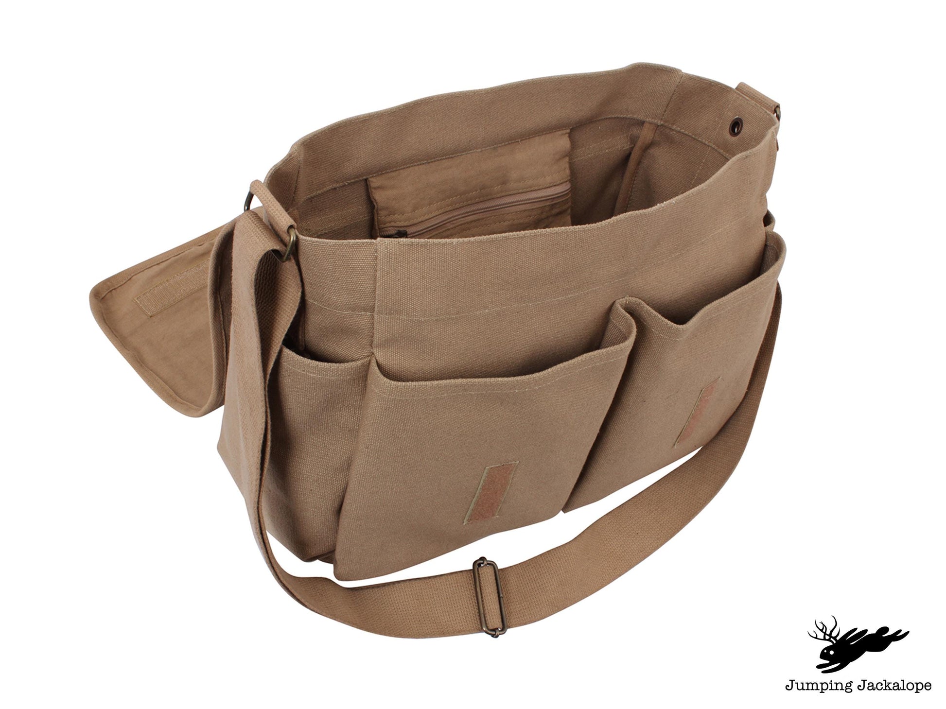 - Adjustable Shoulder Strap: Brass fittings allow the strap to adjust up to 52” for a comfortable, customizable fit.